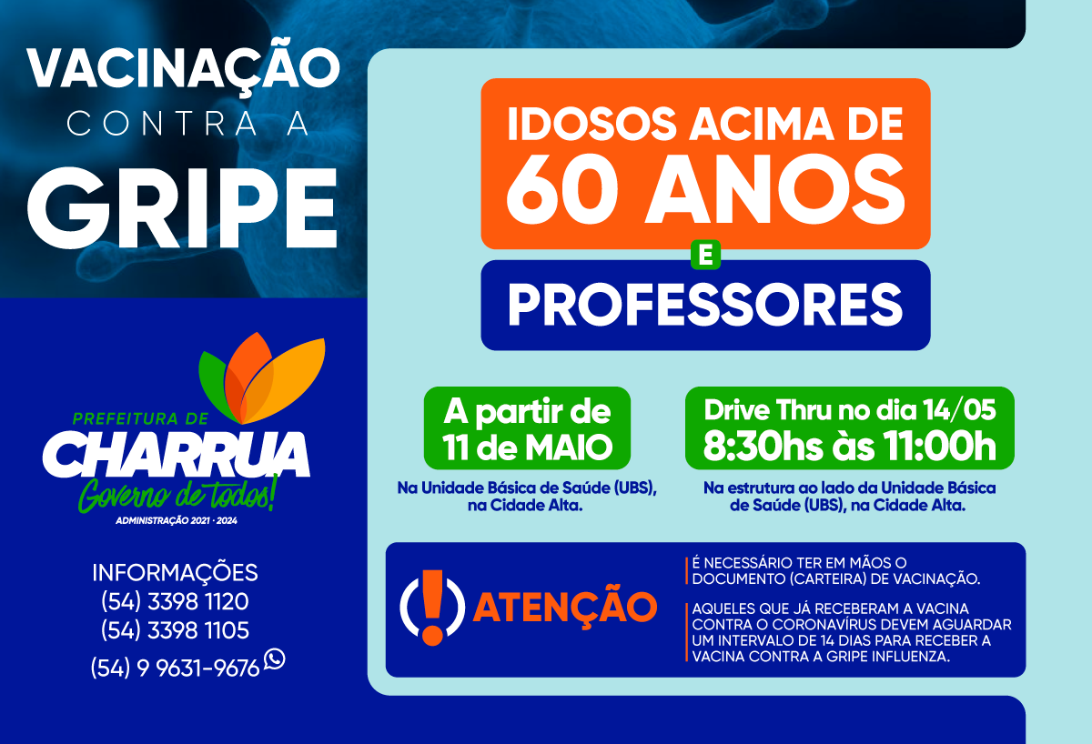 Imunização vai ser em drive-thru (dentro do carro) das 8h30 às 11h na estrutura ao lado da UBS