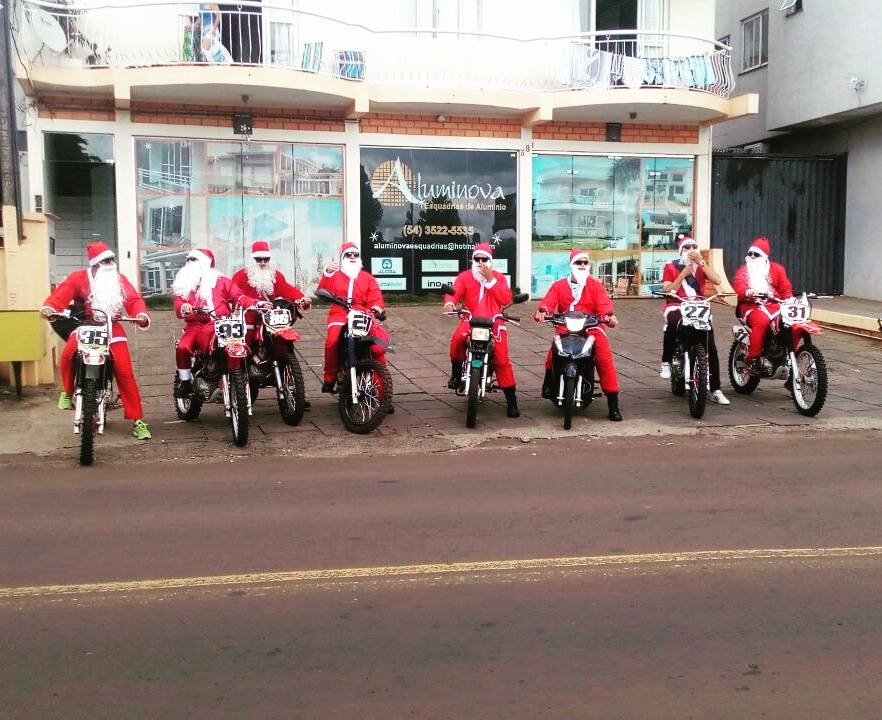 Além do tradicional trenó e as renas, o Papai Noel em Erechim, chegou a muitas casas com motos de trilhas. A iniciativa repetida pelo segundo ano, partiu de um grupo de trilheiros da região, que com apoio de empresas da cidade, distribuiu balas, abraços e muitos carinho na tarde deste sábado (24).