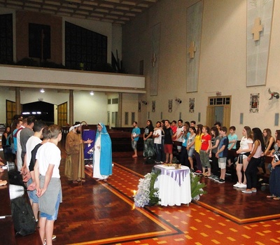 Jovens de mais de 15 paróquias da Diocese de Erexim participaram da quarta vigília da juventude em preparação ao Natal, no Santuário de Fátima, das vinte e duas horas desta sexta-feira (23) até às seis horas deste sábado (24). Com a assessoria do jovem liberado da Pastoral da Juventude de Passo Fundo, Eduardo Scorsatto, e a participação do Pe. Maicon Malacarne, assessor diocesano de Erexim, os participantes alternaram momentos de canto, silêncio, leituras bíblicas e dinâmicas de integração e partilha de experiências. Fizeram também seu lanche comunitário, num especial momento de convivência fraterna.