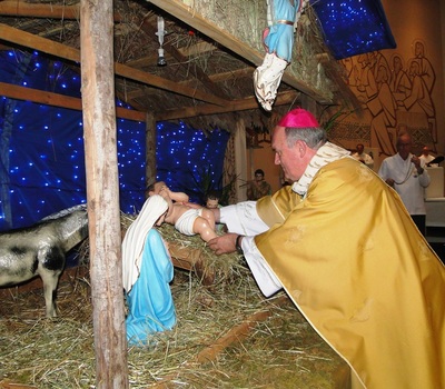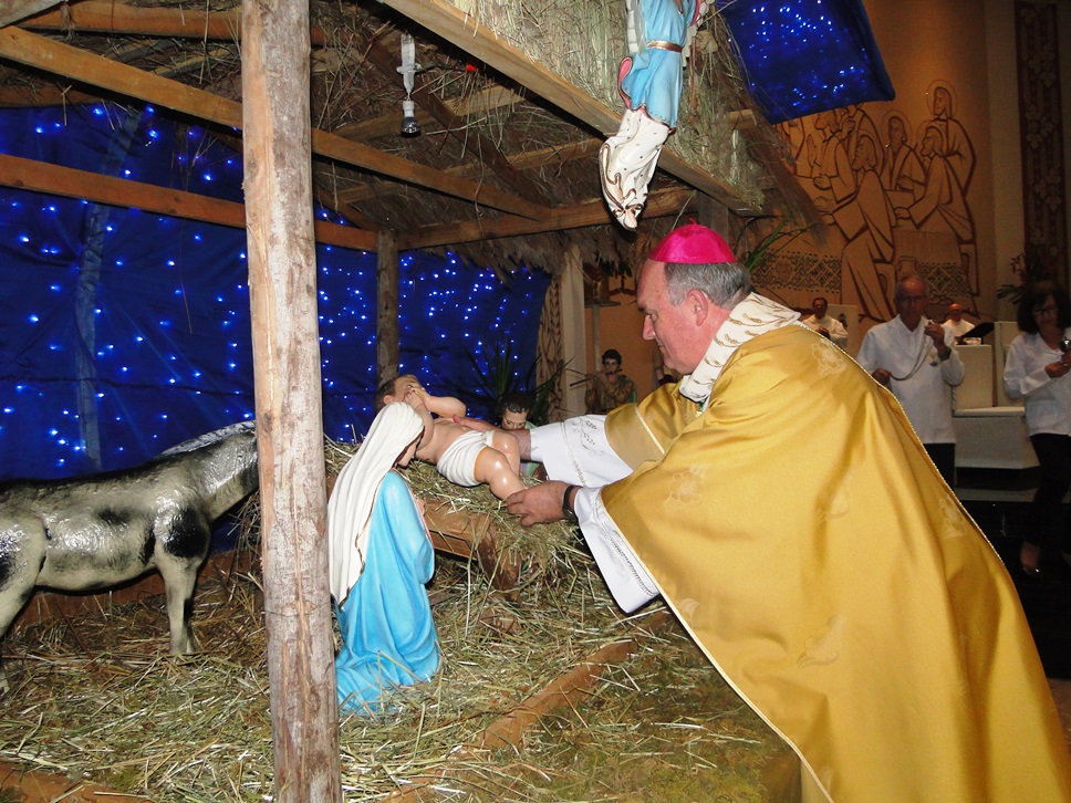 Após o canto do glória, um casal levou a imagem do menino Jesus a Dom José, que a colocou no presépio. Após o evangelho, um casal com um bebê, representando Maria e José com o recém-nascido em Belém, dirigiu-se ao presépio, onde permaneceu até o final da celebração. O Bispo abençoou o presépio e fez a homilia.