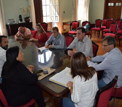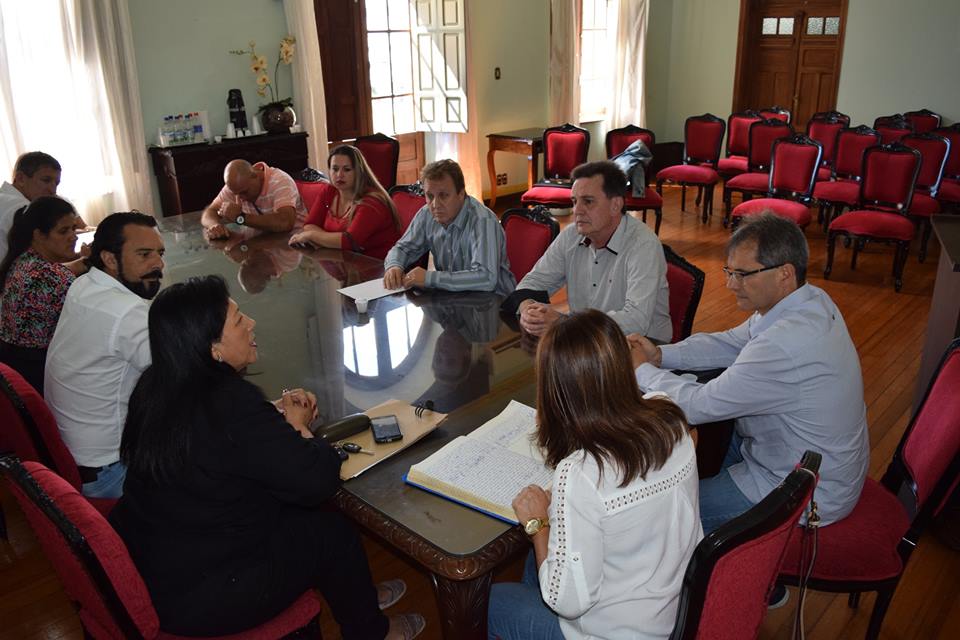O prefeito de Erechim, Luiz Francisco Schmidt (PSDB), o vice-prefeito, Marcos Lando (PDT) e o secretário da Fazenda, Roberto Fabiani estiveram reunidos na manhã de quarta-feira (22) no salão nobre da prefeitura. Durante o encontro, os representantes do Executivo ouviram a nova proposta do Sindicato dos Municiparios de Erechim (Sime) que sugere o reajuste de 6% com data base de 1º de março e outros 0,5% reajustados no mês de maio deste ano.