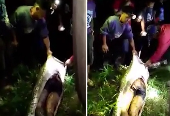 Agricultores locais desconfiaram que o homem pudesse ter sido engolido pelo réptil, que já havia sido visto na região. Decidiram caçar a cobra e, ao encontrá-la, perceberam que ela tinha uma protuberância enorme.