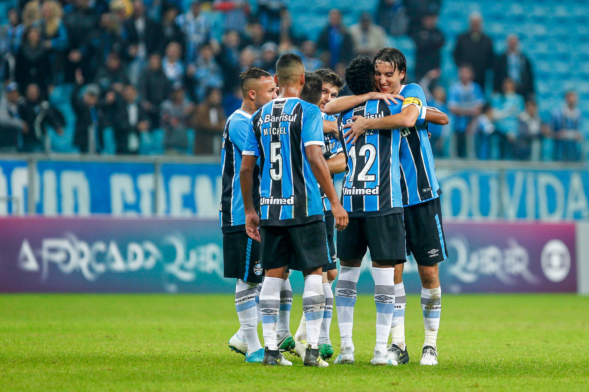 Grêmio - Marcelo Grohe, Edílson, Pedro Geromel, Kannemann, Bruno Cortez, Michel, Maicon (Lincoln), Ramiro, Arthur (Everton), Pedro Rocha (Fernandinho), Luan - Técnico:Renato Portaluppi