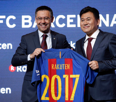 Tida como a grande novidade da temporada por apresentar o maior contrato fixo de patrocínio da temporada 2017/2018, a japonesa Rakuten desbancou a antiga patrocinadora do Barcelona (a Qatar Airways) com uma oferta de patrocínio de 55 milhões de euros por ano, quase 20 milhões superior ao valor pago pela companhia aérea. Outras grandes companhias, como Amazon e Alibaba, cujas especulações apontavam como candidatas a patrocinadores master, também foram deixadas para trás em prol da 'Era Rakuten'. Sobre este ponto, o vice-presidente do Barcelona, Manel Arroyo, justificou que o clube ratificou um acordo feito pela junta de diretores. “A Rakuten tem o perfil que estávamos buscando: claramente global e em sintonia com o nosso objetivo de nos tornarmos ainda mais populares em todo o mundo”, disse. A Rakuten é uma das principais empresas de internet do planeta, atua em 29 países e ficou conhecida por inventar o e-commerce no Japão. No Brasil, acaba de ganhar o prêmio BR Week de melhor plataforma do comércio eletrônico por conta de seu suporte para grandes operações de comércio eletrônico, assim como soluções para o pequeno e médio lojista.