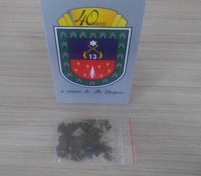 Às 10h, uma guarnição da Brigada Militar efetuou a abordagem de indivíduo suspeito na Rua Rejane de Almeida Polasek, no Bairro Amanhecer. Em revista pessoal ao mesmo foi encontrada uma porção de maconha pesando 4,92g no bolso de sua calça. O homem de 19 anos de idade foi ouvido em termo circunstanciado confeccionado no local pelos policiais e após foi liberado.