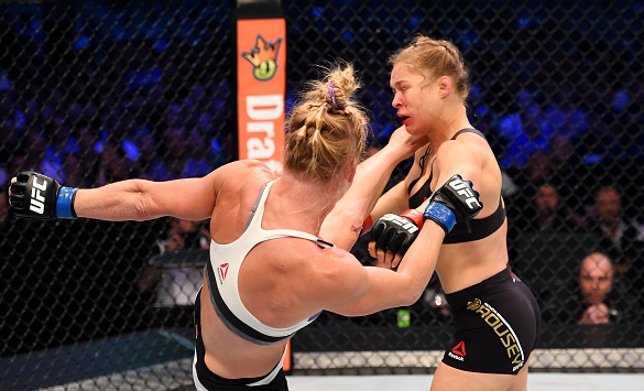 A torcida já estava em pé quando Holm voltou para o segundo round e continuou seu massacre. Defendendo bem as quedas de Ronda, Holm conseguiu deixar a ex-campeão perdida após um belo chute na cabeça e partiu para finalizar a luta no ground and pound. Ronda Rousey só levantou para abraçar seus familiares e sair chorando e lamentando a derrota do octógono. Festejando, Holm repetiu várias vezes que estava sem palavras para descrever o momento e foi ovacionada pelo público que lotou o estádio.
