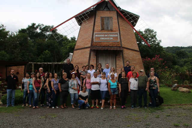 A primeira parada foi o Moinho de Pedras. O que mais chamou a atenção de todos foi um pequeno rio com águas correntes e cristalinas que passa no meio da propriedade. O ambiente passa muita tranquilidade, tanto que é usado por turmas para prática do reiki.