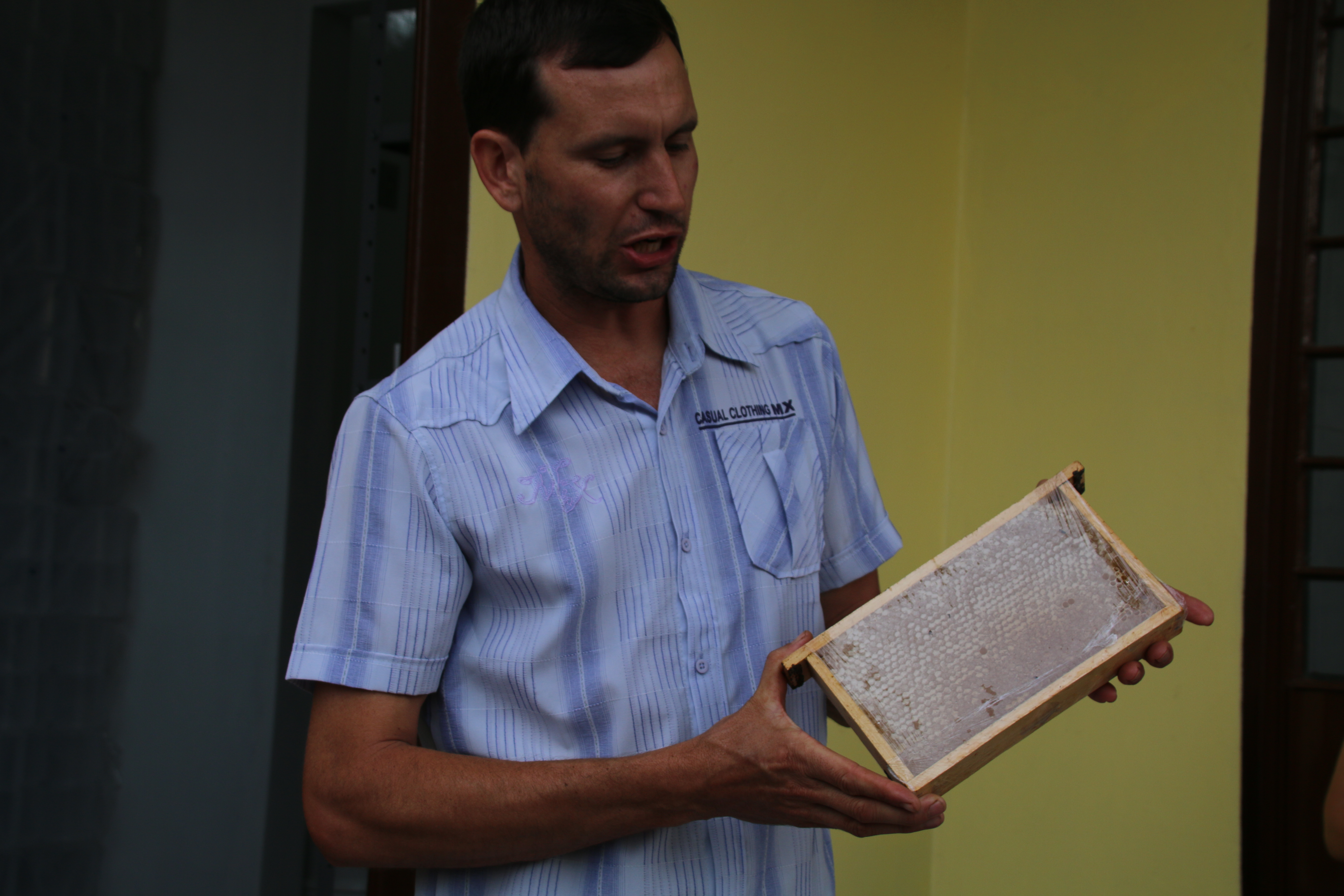 A segunda parada foi na propriedade de Apicultura da família Angonese, local onde foi possível conhecer a fabricação de mel. Na chegada a família já esperava a todos logo na entrada. No local foi apresentado um pouco da história familiar, conduzida pelo filho Rodrigo Matheus. O produtor contou a todos sobre a criação de abelhas, produção e comercialização do mel e alguns outros produtos cultivados pela família. Ao final do passeio foi oferecido aos visitantes uma degustação do mel diretamente do favo.