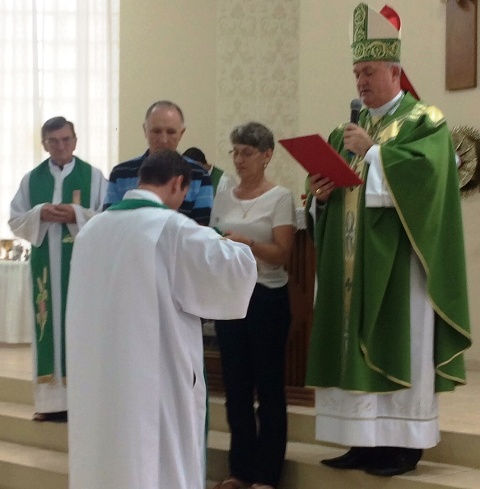 A Igreja São Cristóvão, oficializou no último sábado (27), um novo pároco, o padre Anderson Francisco Faenello, em missa presidida pelo Dom José Gislon, às 18h. A homilia destacou a trajetória do novo pároco na comunidade de São Cristóvão. Conforme assessoria, a oportunidade possibilitou ao novo pároco renovar os compromissos sacerdotais. Ao final do protocolo religioso, Dom José lhe entregou um dos símbolos mais característico da nova função que Anderson Faenello desenvolverá.