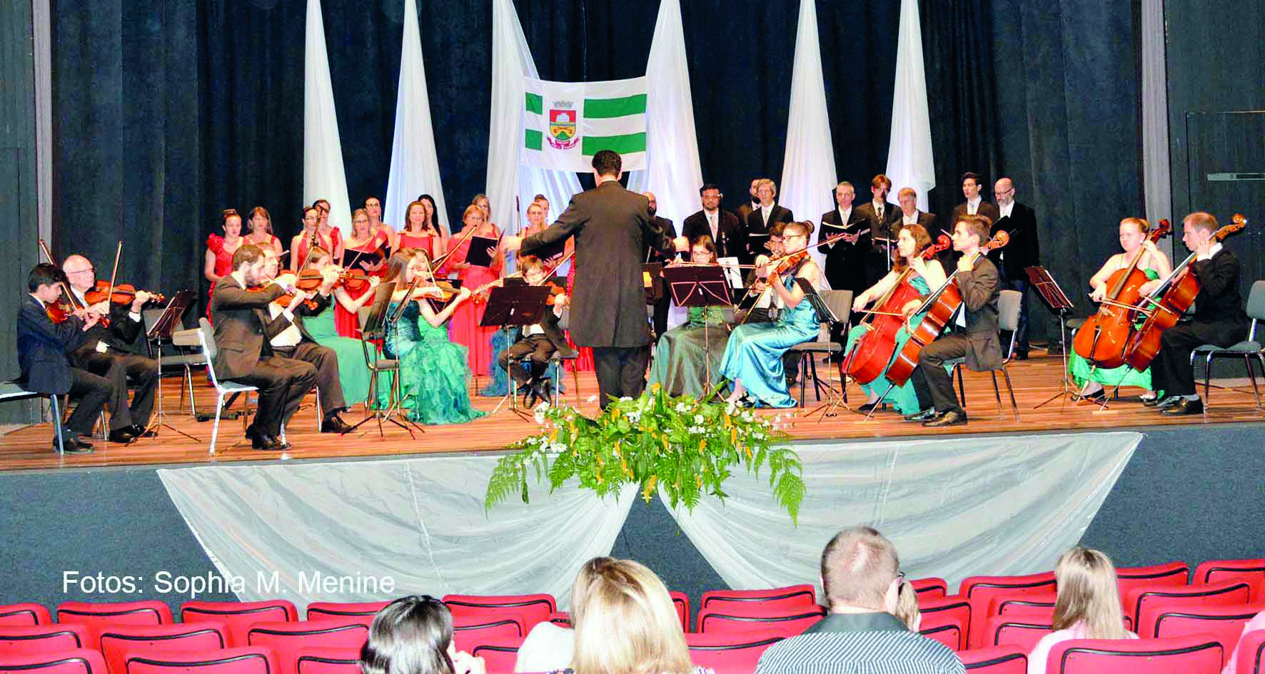O maestro Maurício Castelli regeu o coral e a orquestra, levando momentos de encanto para o público, finalizando a homenagem à cidade centenária com o Hino de Erechim e após o tradicional "Parabéns á você".