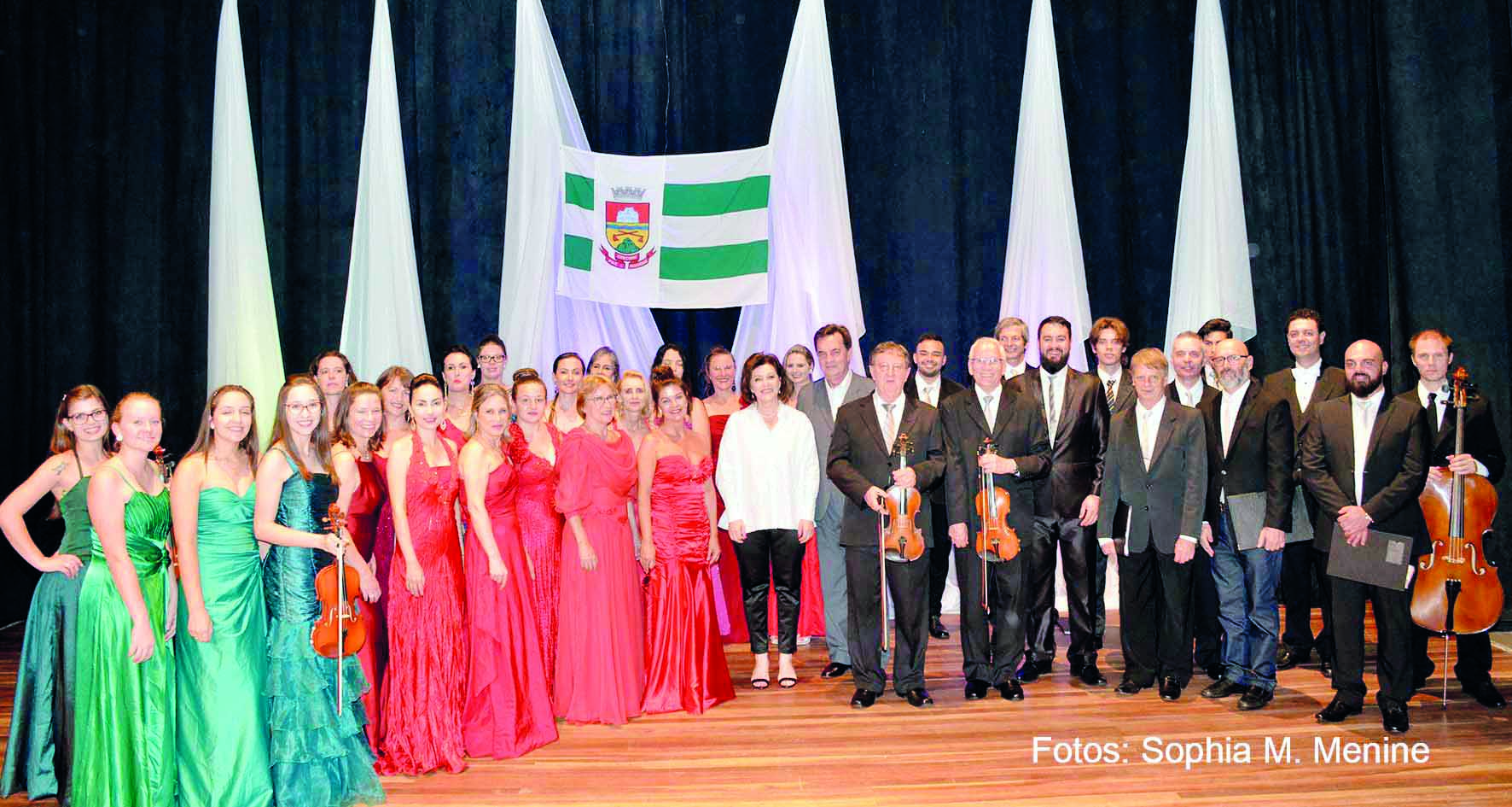 O espetáculo iniciou com a apresentação do Coral Madrigal, seguido da OCE que interpretou músicas eruditas e populares. Nas apresentações solo houve a participação de Murilo Andreolla (solo de violino e viola) e a Soprano Camila Medeiros. Na mesma ocasião foram homenageados os músicos Cesar Kreische - 60 anos de dedicação a orquestra - e Rudolfo Krüger, que comemorou aniversário.