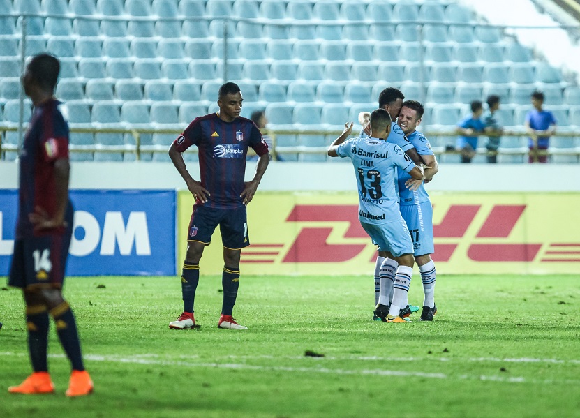 Por outro lado, o Monagas também ameaçou com Romero, que obrigou Marcelo Grohe a fazer uma grande defesa, já na reta final da etapa incial.