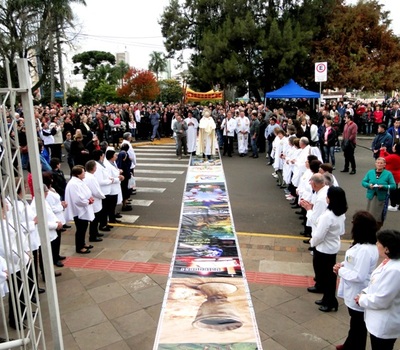 Nesta quinta-feira (31) a Igreja Católica realiza a solenidade de Corpus Christi. O ato religioso foi instituído pelo Papa Urbano no ano de 1264 com a finalidade de louvar e bendizer a Deus, proclamar a fé e renovar o compromisso dos féis com a com bênção do santíssimo sacramento Em Erechim estão programadas diversas celebrações nas igrejas do centro e dos bairros. A novidade deste ano ocorre por conta das missas e confecções dos tapetes na parte da manhã nas igrejas e paróquias de Erechim.