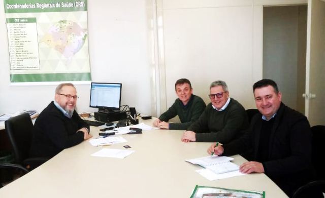 Nesta sexta-feira (13), o secretário de saúde de Erechim, Jackson Arpini, o diretor Executivo da Fundação Hospitalar Santa Terezinha (FHSTE), Hélio Bianchi, e o coordenador Regional de Saúde, Ivan Devensi e técnica da 11ª CRS, mantiveram audiência com o Secretário Estadual de Saúde, Dr. Francisco Paz, na Secretaria Estadual de Saúde (SES), em Porto Alegre.