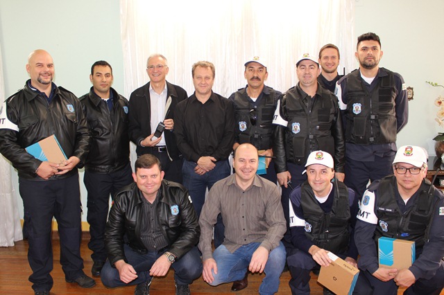 A partir de hoje (18) todo o contingente de agentes municipais de trânsito de Erechim passa a operar com o auxílio de rádios portáteis transceptores. A entrega do equipamento foi feita nesta manhã pelo vice-prefeito Marcos Lando, pelos secretários municipais de Administração, Valdir Farina, e de Obras e Habitação, Vinícius Anziliero.
