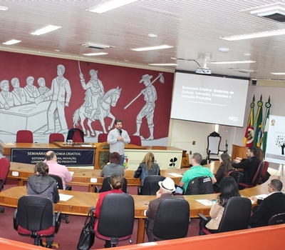 Para dar continuidade aos trabalhos iniciados na tarde desta quinta-feira (26), no Plenário da Câmara Municipal de Vereadores, participantes do Seminário “Economia Criativa: Sistemas de Culturas, Inovação, Conexões e Inclusão Produtiva”, que acontece até este sábado, acompanharam a palestra de Neidmar Alves, da NRCA Consultoria, que teve como foco o tema do seminário.