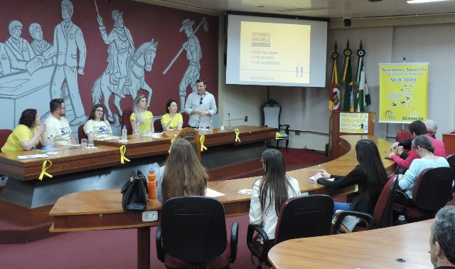 Na última sexta-feira (28), dois temas de grande importância – mas que ainda são considerados tabus na sociedade – foram pauta de eventos realizados na Câmara Municipal de Vereadores de Erechim: a depressão e o suicídio. Em alusão ao Setembro Amarelo, o gabinete do vereador Ale Dal Zotto (PSB) promoveu uma mesa redonda e uma palestra/debate com o mote “Suicídio e depressão em Erechim: realidade e possibilidades de intervenção”. As atividades contaram com a participação de da Secretaria Municipal de Saúde, da 11ª Coordenadoria Regional de Saúde, do Centro de Valorização da Vida (CVV), do Conselho Regional de Psicologia e instituições de ensino da cidade.
