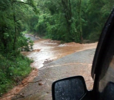 Chuva causou alagamento em estrada no interior de Aratiba