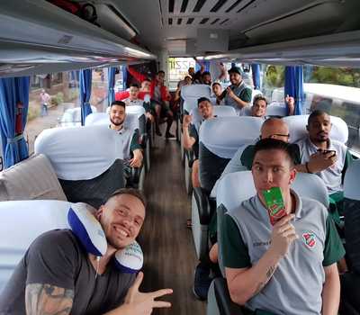 A delegação do Atlântico embarcou no início da tarde desta sexta-feira para Pato Branco. Já na cidade paranaense, o time teve um treino9 na quadra do jogo de domingo, no final do dia.