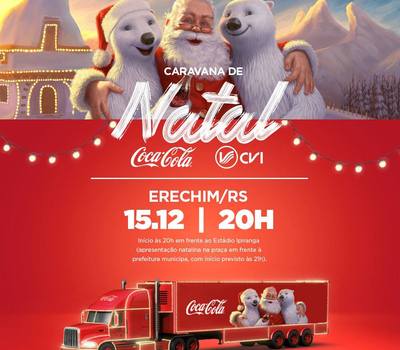 A tradicional Caravana de Natal da Coca-Cola passará por Erechim no próximo sábado, dia 15, a partir das 20 horas, com diversas atrações. Os caminhões iluminados sairão do estádio Colosso da Lagoa e passarão pelas principais ruas da cidade e, por fim, haverá apresentação do espetáculo de Natal, na Praça da Bandeira, com início previsto para as 21h. Será uma noite incrível promovida pela CVI Refrigerantes, contando com apoio da ACCIE. O evento integra a programação de Natal de Erechim.