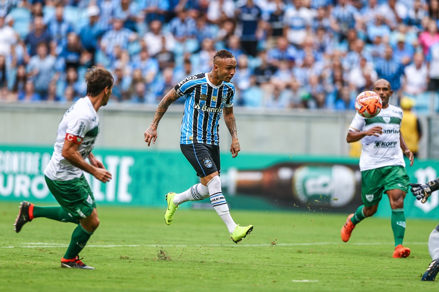 A bola mal começou a rolar e o Tricolor já foi efetivo no ataque. Marinho foi a linha de fundo e fez um cruzamento perfeito da ponta direita, direto na cabeça de Luan, que subiu e desviou para o fundo das redes. O segundo gol saiu aos 41' da etapa inicial, quando Jael fez um lançamento para Everton, que recebeu, invadiu a área e encobriu o goleiro Andrey, assinalando um golaço na Arena.