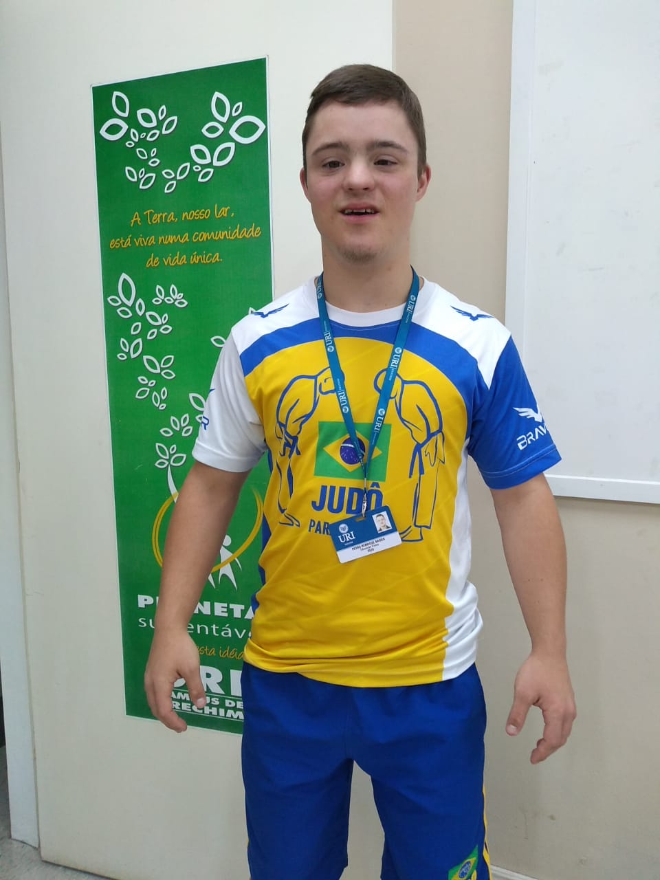 # A atuação na monitoria da URI (auxiliando os professores de educação física em suas atividades, durante 20 horas semanais) é desenvolvida dentro de um programa que a instituição oferece a estudantes com algum tipo de deficiência e rendeu a Pedro a sua primeira carteira de trabalho, assinada em 2018.