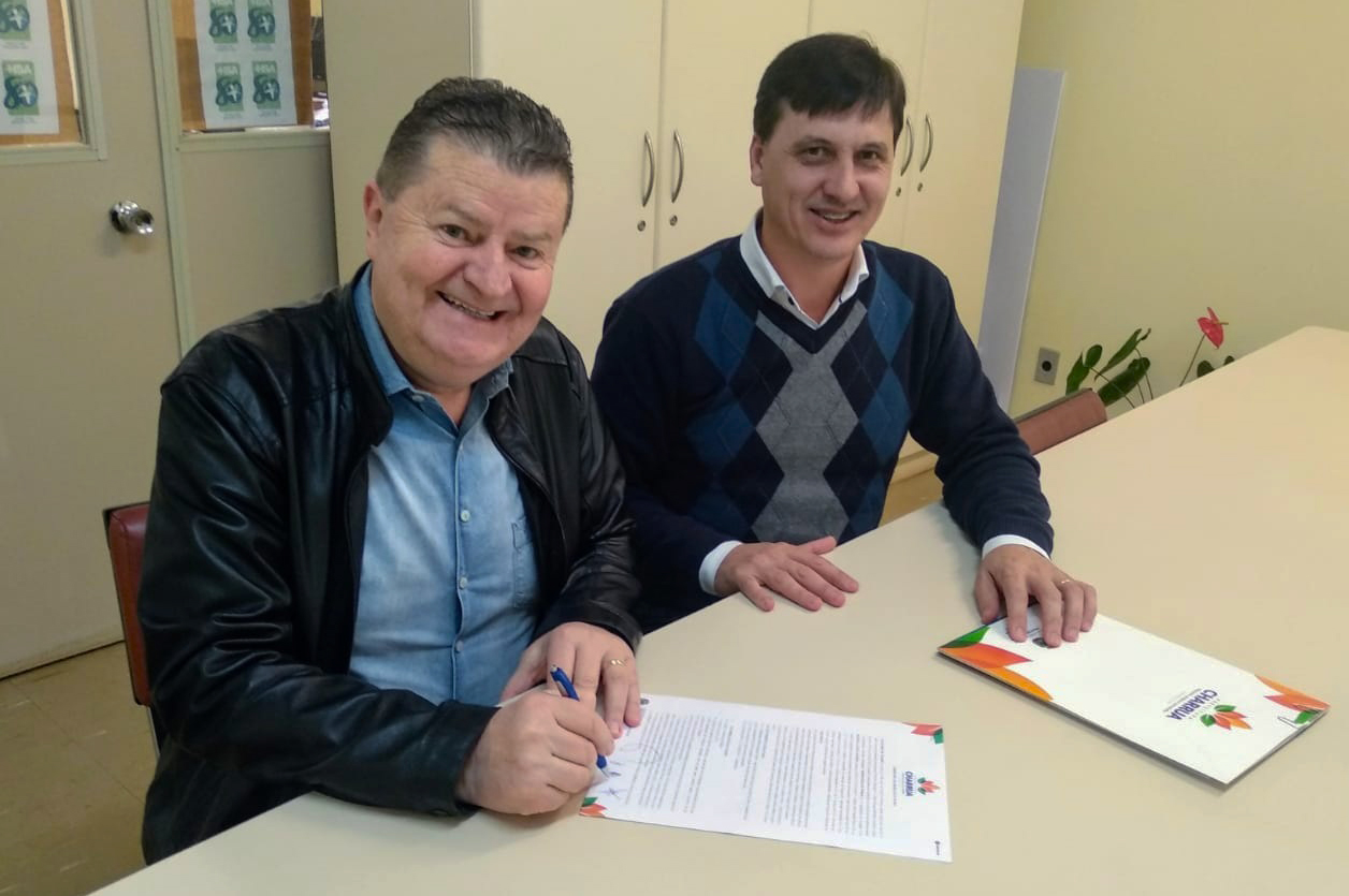 O ato de assinatura da parceria ocorreu no sala de reuniões do HSA, na presença do prefeito Valdésio Roque Della Betta e do presidente do Hospital, Sirinei Panizzon.