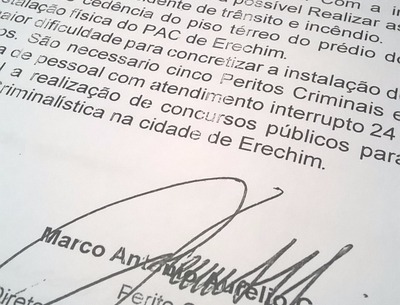 O diretor ressaltou que a maior dificuldade para concretizar a instalação do PAC é a carência de recursos humanos. “São necessário cinco peritos criminais e cinco fotógrafos para suprir a demanda de pessoal com atendimento interrupto 24horas/dia. Assim é imprescindível a realização de concurso público para instalação do Posto Avançado de Criminalística na cidade de Erechim”.