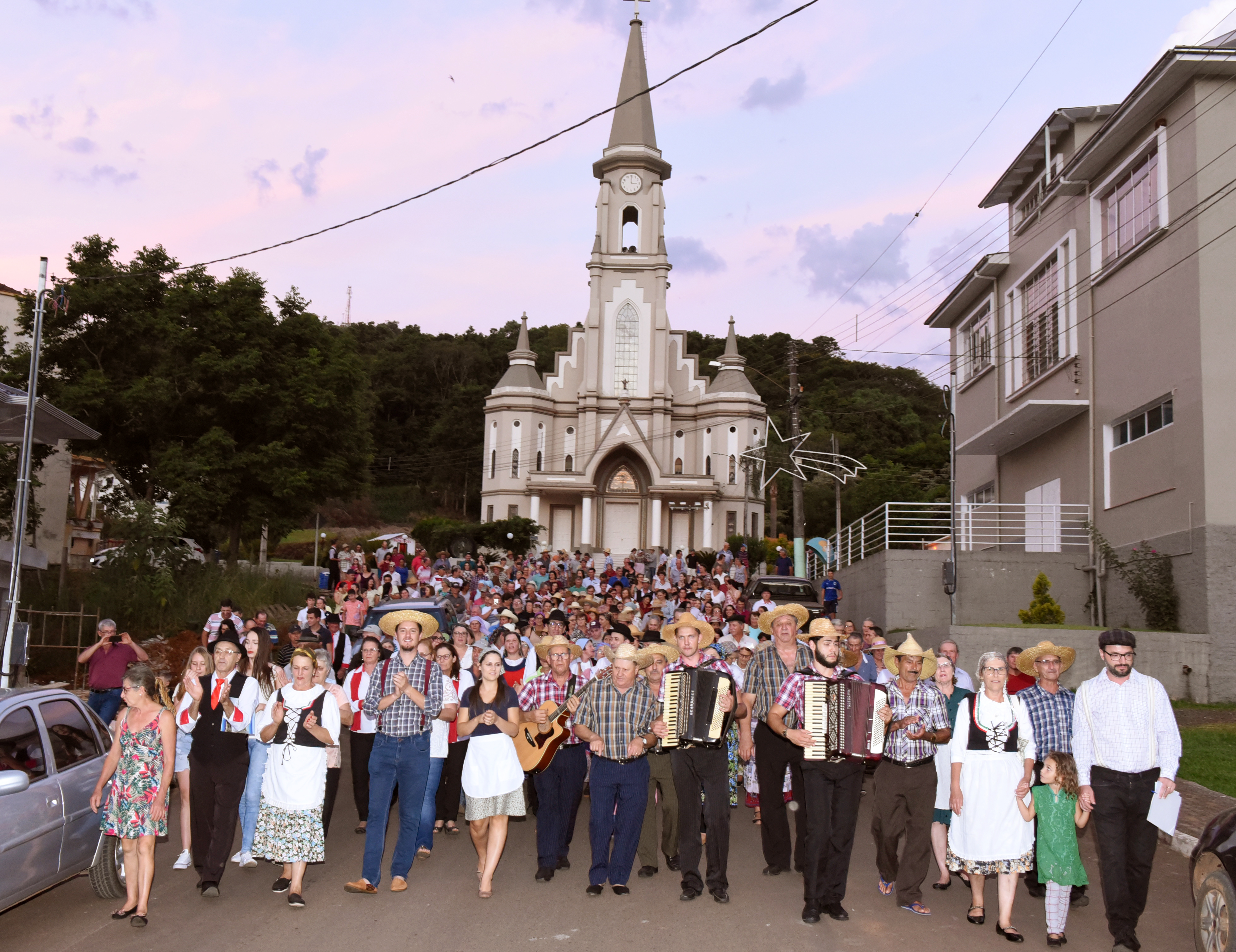 Uma noite marcada pela integração entre a comunidade, cultura e valores. A recepção aconteceu em frente à Igreja Matriz Nossa Senhora Medianeira com muita cantoria a cargo do grupo Stella de Pietra. Em seguida iniciou a caminhada em direção ao Centro de Eventos.