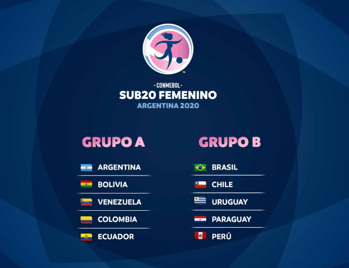 A Conmebol divulgou oficialmente os grupos do Campeonato Sul-Americano Feminino Sub-20. Por ser o atual campeão do torneio, o Brasil será cabeça de chave do Grupo B, com Chile, Uruguai, Paraguai e Peru. A competição que acontece na Argentina, entre os 4 a 22 de março, terá duas cidades-sedes. Na primeira fase, a equipe brasileira ficará em San Luis, já o Grupo A estará San Juan.