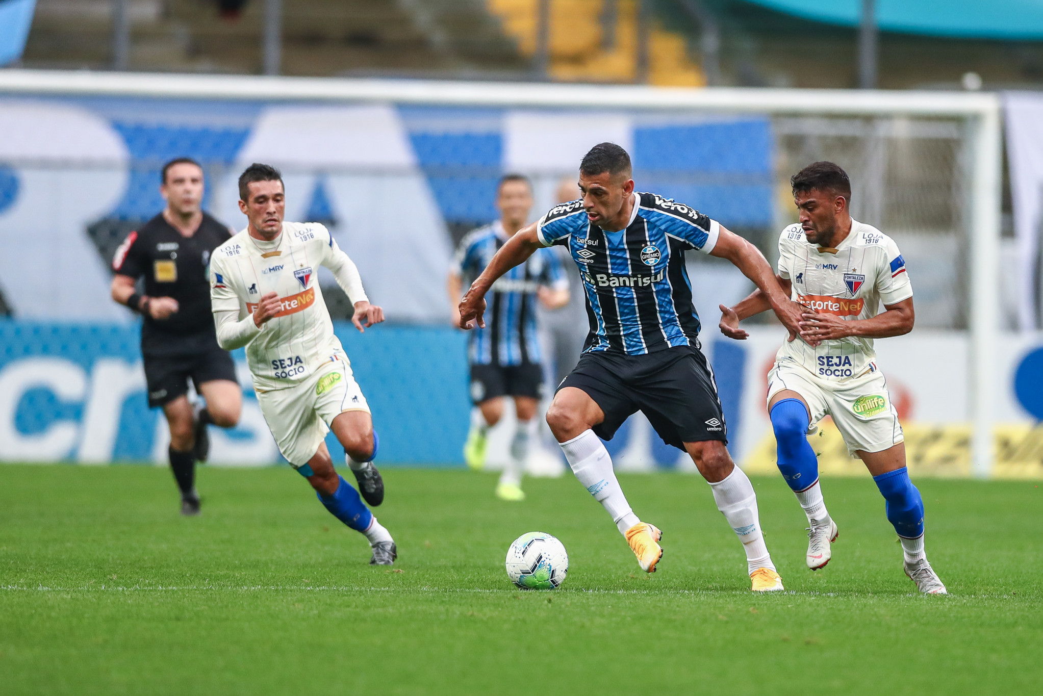 O jogo vai para os acréscimos, mas o tricolor não consegue fazer nenhuma jogada que leve risco ao Fortaleza, que marca forte e não deixa o Grêmio avançar. E jogo termina empatado em 1 a 1, e o Grêmio consegue somente um ponto em casa, fazendo 12 pontos e ficando na 10ª posição.