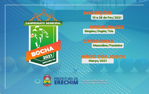A Secretaria de Cultura, Esporte e Turismo, por meio do Departamento de Esportes, abre inscrições para o Campeonato Municipal de Bocha 2021. O período que começa nesta quarta-feira (10), vai até sexta-feira (26).