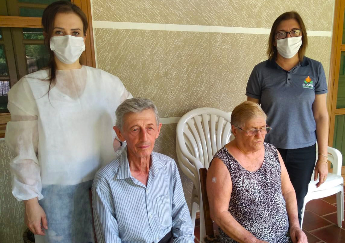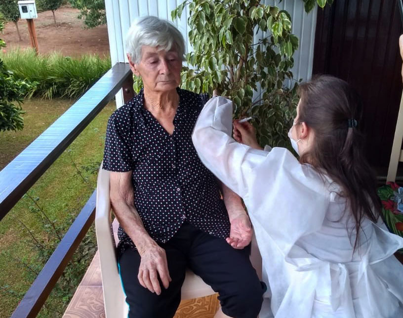 A secretária de Saúde e Assistência Social de Charrua, Janete Derengoski, esteve acompanhando no último sábado (27) a técnica em enfermagem Angelita de Giacometti, na aplicação das vacinas contra a