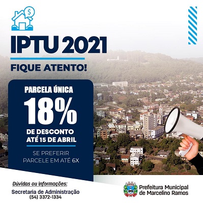 A prefeitura vai emitir um boleto com vencimento para dia 15 de abril com desconto de 18% no imposto para parcela única. Por isso, quem optar pelo parcelamento, precisa manifestar o interesse junto a prefeitura.