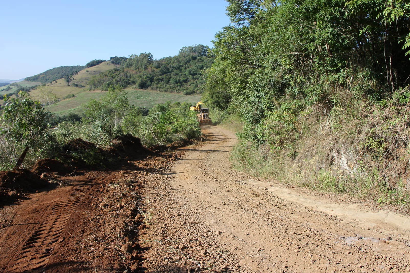 A Secretaria Municipal de Obras de Viadutos realizou a limpeza e alargamento de estradas na área rural do município. O trecho dá acesso à Linha Santana.