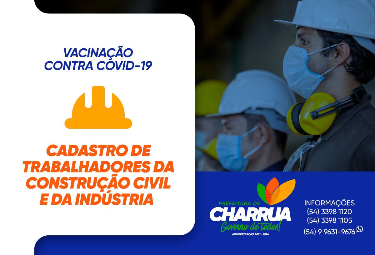 Trabalhadores da construção civil e da indústria de Charrua devem comparecer na Unidade Básica de Saúde, na Cidade Alta, para o cadastramento da vacinação contra Covid-19.