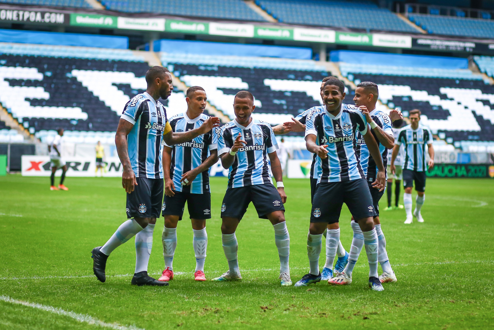 Aos 7’ do segundo tempo, após cruzamento na área, a bola foi afastada e caiu nos pés de Guilherme Azevedo, que dominou e chutou no canto direito da meta, abrindo o placar na Arena. Aos 19’, o segundo gol gremista. Léo Pereira recebeu no meio, desceu em diagonal para a direita, invadiu a área e mandou por cobertura, assinalando um lindo gol. E no final da etapa complementar, Jhonata Robert assinalou o terceiro gol do Tricolor. O meia-atacante trabalhou pela direita com Victor Bobsin, recebeu novamente na área e chutou forte, sem chances de defesa.