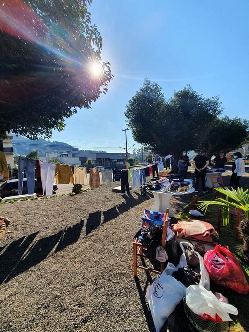 O município de Paim Filho realizou, no sábado (5), o Varal Solidário, na praça central da cidade, durante o dia todo. O evento, beneficente, foi promovido pelo Léo e Lions Clube de Paim Filho, Grupo de Danças Artísticas Herdeiros da Tradição e CTG Coxilha do Inhandava. O objetivo da iniciativa foi para receber a doação de peças de roupas que as pessoas não usam mais. Além disso, ser um ponto de referência para quem necessitasse, podendo retirar as peças no local.