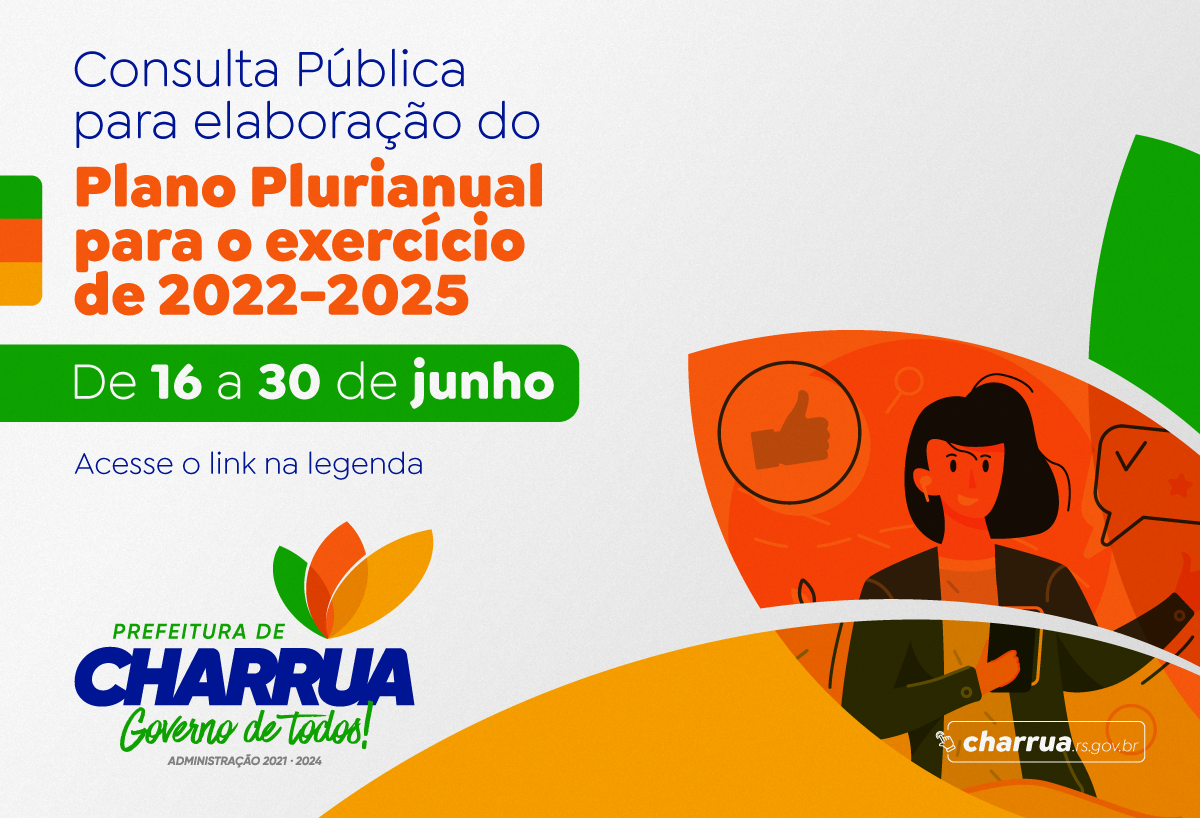 Tendo isso em vista, a Prefeitura de Charrua está disponibilizando uma ferramenta para a participação dos munícipes na elaboração do Plano Plurianual (PPA), para o quadriênio 2022-2025. Os charruenses podem ter acesso aos planejamentos anteriores e opinar a respeito de sua continuidade ou necessidade de ajustes através do link: https://forms.gle/3rMDa6RXxJQ3MV4w7