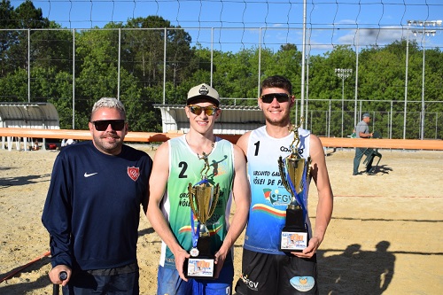 A Secretaria de Cultura, Esporte e Turismo, por meio do Departamento de Esportes e o Conselho Municipal Desportivo (CMD), realizaram no domingo (24), os jogos da etapa masculina do 1º Great duo de Vôlei de Areia. A competição contou com dez duplas, aconteceu no Sesi e contou com a presença do diretor de esportes da Federação Gaúcha de Vôlei de Areia, Matheus Vier. Veja o pódio: