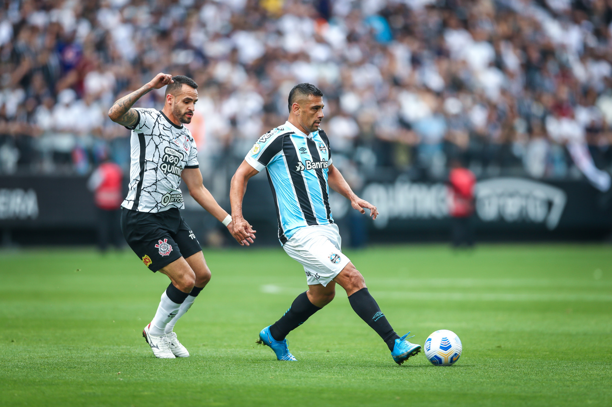 Aos 38’ do primeiro tempo, Ferreira cruzou da linha de fundo, Diego Souza dominou no peito e deu um toquinho de bico para tirar de Cássio e abrir o placar. Aos 42’ da segunda etapa Renato Augusto recebeu na esquerda, avançou para o meio e, livre, mandou uma bomba no ângulo esquerdo de Gabriel Grando. Final, Corinthians 1, Grêmio 1.