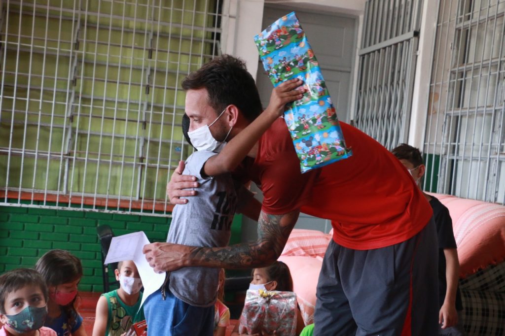 Dentre os pedidos, carrinhos, bonecas, cozinha e violão. Cada atleta presenteou uma criança de acordo com o pedido. Acompanhados do professor, Evandro, a cada presente entregue pelos atletas foi possível notar a alegria das crianças e professores.