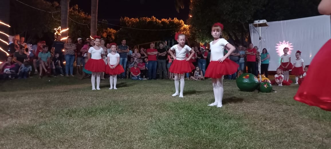 Uma belíssima apresentação de ballet encerrou as festividades natalinas do município de Cruzaltense, na noite de quinta-feira (23). Na ocasião, foi realizada a entrega de brinquedos para as crianças, e o sorteio do programa Natal Premiado do comércio de Cruzaltense que distribuiu 40 vales-compras no valor de R$ 200, 5 cestas natalinas e 2 poupanças no valor de R$ 200,00.