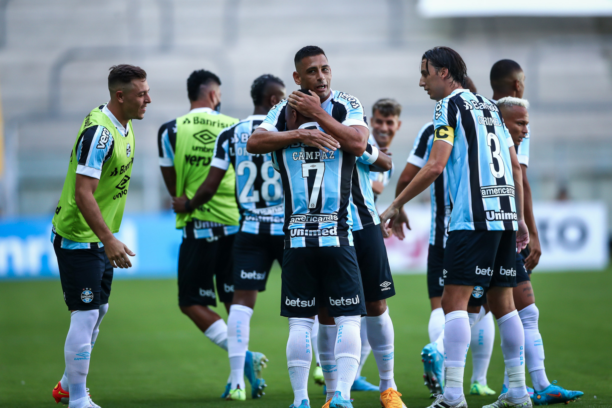 Aos 5’ do primeiro tempo, na entrada da área, Campaz cobrou falta com categoria e acertou o ângulo do goleiro Fábio para abrir o placar. Já no início da segunda etapa, logo aos 2’, Marcelo cruzou na área gremista, a bola desviou em Jadon e sobrou para Bruno Jesus empurrar para o fundo da rede e deixar tudo igual no placar. E aos 19’, Ferreira arrancou em velocidade, lançou Campaz, que deu bom passe vertical na saída do goleiro Fábio e serviu Diego Souza, que ficou livre na área para chutar e recolocar o Grêmio na frente. Aos 44’, o meia gremista Gabriel Silva ainda carimbou a trave adversária e no minuto seguinte o lateral Nicolas mandou por cima do gol.