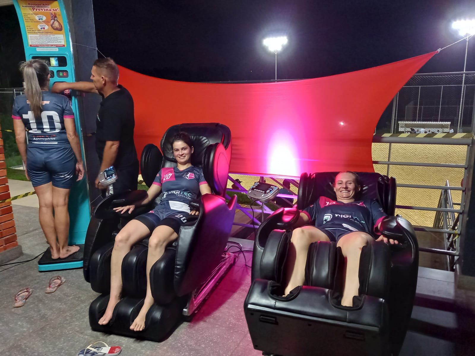 Nesta quinta-feira (10), aconteceram jogos de Beach Soccer e também foram oferecidas ações de saúde a “Bike Suco”, para produzir o seu suco, com equipamento liquidificador tocado por força motriz de pedalada, para instigar a atividade física e o consumo de sucos naturais; a “Balança Multifuncional”, um equipamento de avaliação de peso, altura, IMC, %g, PA e BC, aparelho auto instrutivo com impressão de dados (com orientação) e “Poltronas de Massagem Robóticas” com seis modos de massagens, modo gravidade zero, apoio de pés, no mínimo 36 airbags, níveis de massagens reguláveis, aquecimento lombar e painel multifuncional para massagem relaxante.