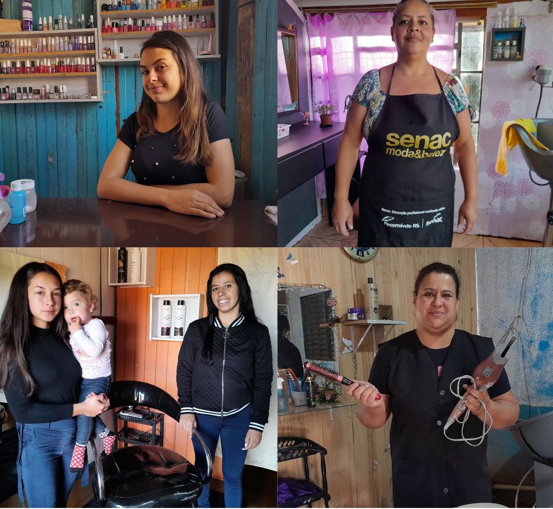 Quando o curso de técnicas de cortes de cabelo encerrou, Dienifer e Talia se uniram para criar o próprio salão. “Sempre pensávamos em trabalhar na área, mas não tínhamos condições financeiras, então, fizemos um curso de maquiagem, compramos os produtos, já planejando a possibilidade futura de abrir um salão. Quando soubemos do curso, nos inscrevemos e participamos durante os seis meses. Foi algo decisivo, uma ajuda muito significativa, sendo que conseguimos obter noções básicas sobre cabelo”, enfatizam.