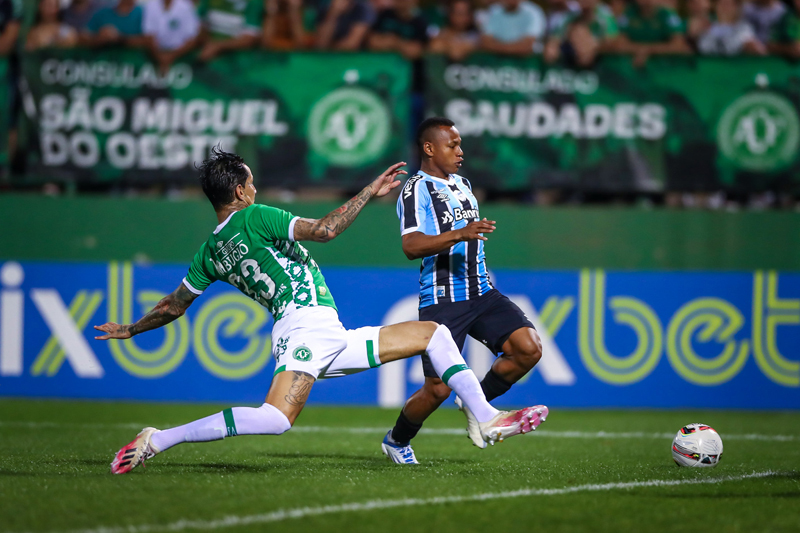 Grêmio e Chapecoense fizeram um jogo morno, na noite de hoje (26) pelo Campeonato Brasileiro Série B. A partida na Arena Condá encerrou sem gols e o placar manteve o Tricolor na segunda colocação da tabela, com 37 pontos, mas o time ainda pode perder posições para o Vasco da Gama e Bahia, que tem suas partidas em casa, na quinta e sexta-feira.