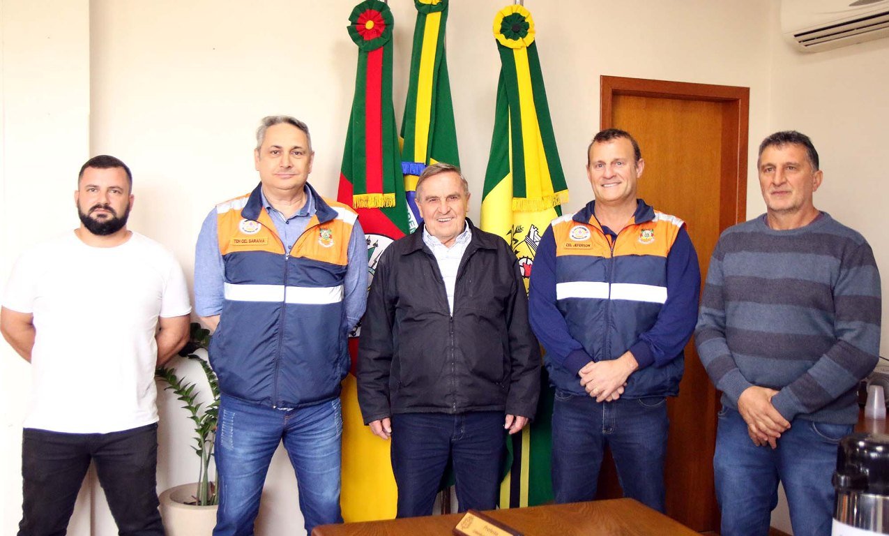 O coordenador Regional da Defesa Civil, Coronel Jeferson Francisco Ecco e o adjunto da Coordenadoria Regional de Defesa Civil, Tenente Coronel Paulo Ricardo Leão Saraiva, foram recebidos pelo coordenador da Defesa Civil em Aratiba, Clademir Ongaratto, pelo prefeito, Gilberto Hendges e pelo vice-prefeito, Gelson Carbonera.