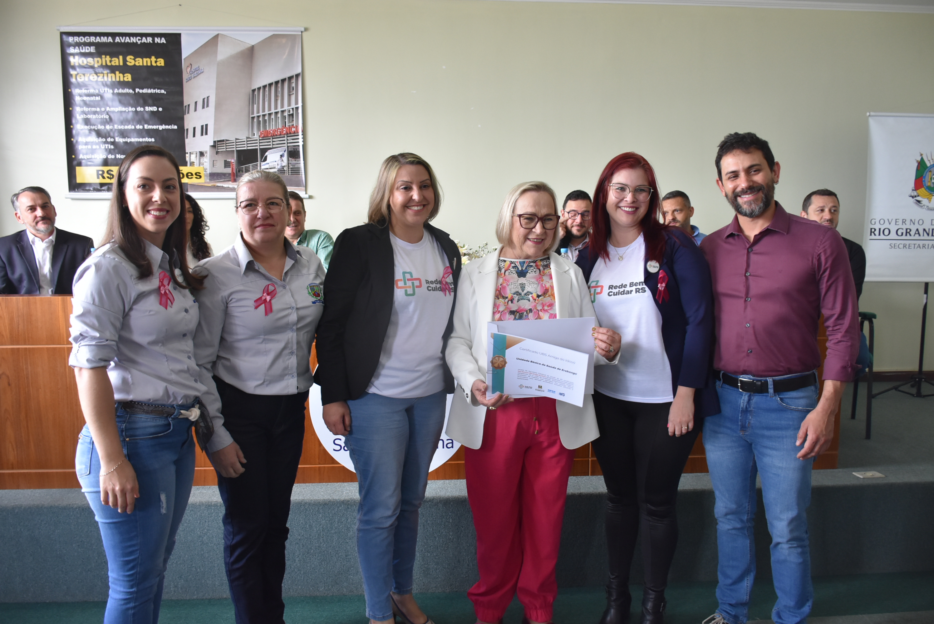 O reconhecimento aconteceu durante evento no auditório do Centro Médico da Fundação Hospitalar Santa Terezinha (FHSTE), onde foi realizado o ato de anúncio de investimentos para reforma e ampliação do hospital. A certificação deve-se ao fato de a equipe de saúde ter alcançado os indicadores obrigatórios do chamado 1º ciclo de avaliação – seis meses, por meio de ações e processos de trabalho que permitem à população idosa, a vivência de uma atenção acolhedora, inclusiva, eficiente e humanizada.