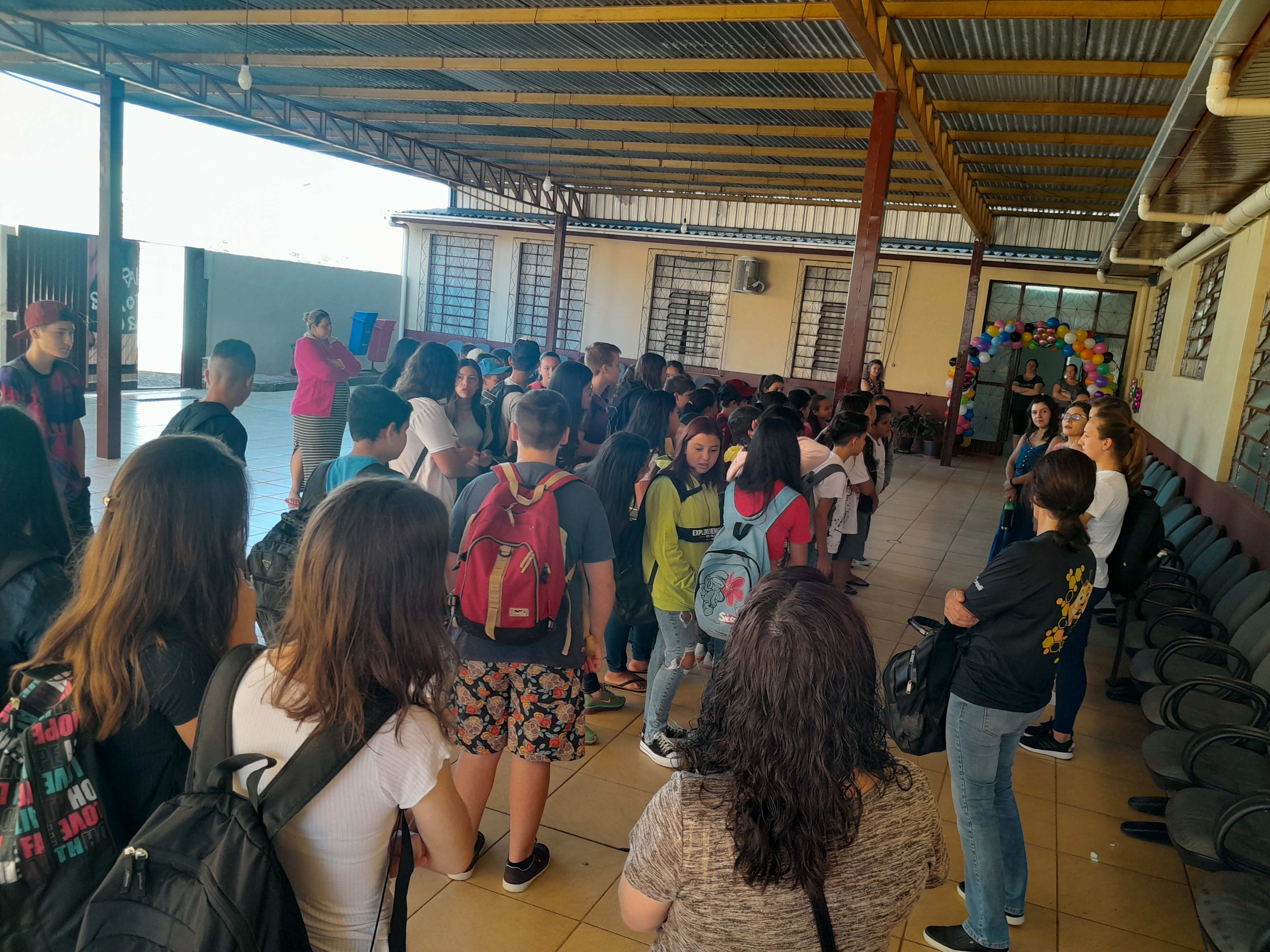 Na Escola de Ensino Fundamental Onze de Abril, os alunos foram recepcionados pela equipe de direção, professores e antes de se dirigir às salas de aula, estiveram reunidos no pátio para receber algumas orientações.